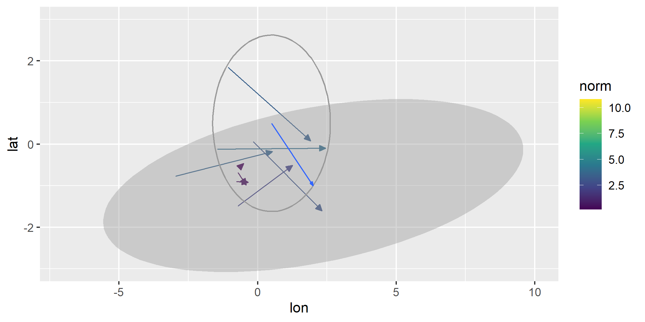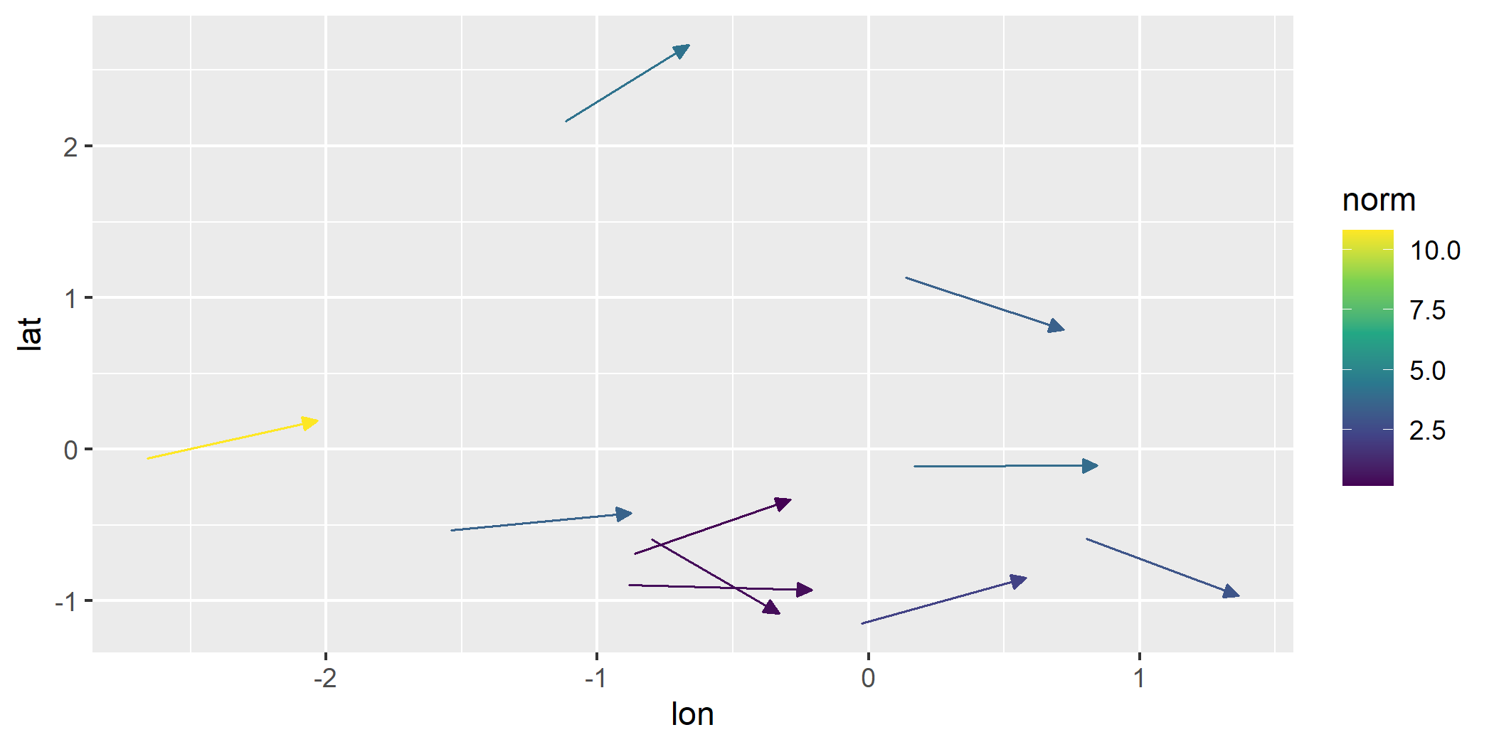 #> 10 -0.89 2.42 0.83 4.17 5.51 1.91 3.09 2.80geom_vector() and